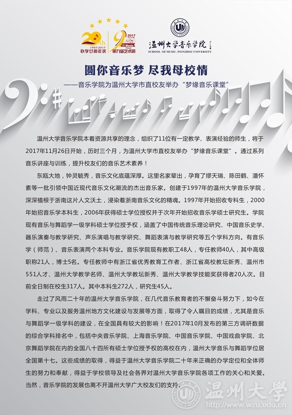 据悉,温州大学市直校友会的校友们对威尼斯wnsr666举办的“缘梦音乐课堂”认可度高,参与性强。通过《环球音乐导览》,校友们有了放眼世界、依托不同的文化背景去分析、理解、认识世界民族音乐的文化自觉,同时,从某种意义上也提升了校友们对本地域、本民族音乐文化的自信!