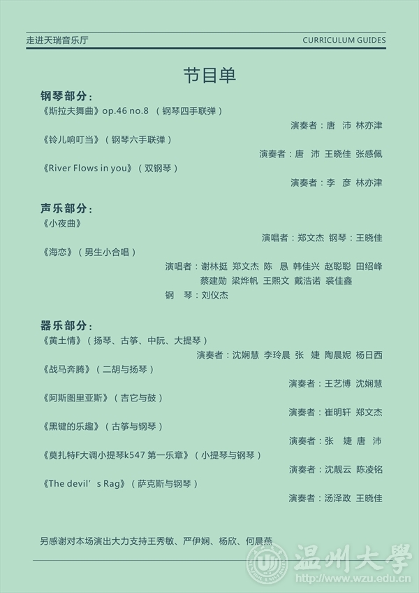 2017年11月22日,温州大学北校天瑞音乐厅举行了“林籁泉韵”讲演音乐会。