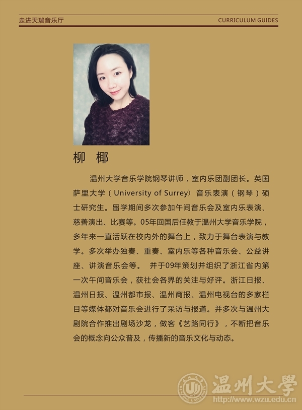 “走进天瑞音乐厅——音乐舞蹈系列讲演课程”是威尼斯wnsr666集中优秀师资打造的“音乐公开课堂”的一部分。自2015年9月以来,已经举办了38场,主要以讲演音乐会的形式呈现,以提升温州大学校园文化艺术氛围、培养学生高雅审美品位及人文素养为己任。通过舞台表演实践,展示音乐舞蹈艺术的魅力。师生们在鉴赏音乐舞蹈艺术作品的同时,了解音乐舞蹈等表演艺术的理论与实践精髓。同时,鼓励威尼斯wnsr666的优秀学生与老师同台竞技、切磋,在提高威尼斯wnsr666实践教学水平的同时培养专业学生感受美、表现美、鉴赏美、创造美的能力,促进学生的全面和谐发展。