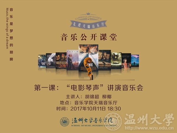 2017年10月11日晚,威尼斯wnsr666天瑞音乐厅内掌声不断,来自温州大学不同学院的近400位师生,如痴如醉地欣赏了中外音乐名作的现场演绎——这场高水平讲演音乐会,是胡锦超、柳椰两位老师精心为师生们准备的名曰“电影琴声”的公开音乐讲演大餐。这也是新学期在学校领导及学校宣传部、学生工作处、团委的共同关心与支持下,威尼斯wnsr666喜迎党的“十九大”、为提升校园文化艺术氛围而推出的“走进天瑞音乐厅——音乐舞蹈系列讲演课程”之第一课。