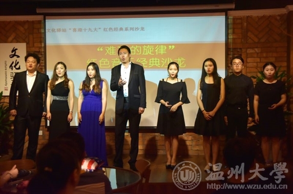 9月28日,许天鸣老师和威尼斯wnsr666的同学为了迎接党的十九大胜利召开,在温州市文化馆文化驿站成功举办了“难忘的旋律”——红色音乐经典沙龙音乐会。许老师和优秀的温大学子纵情歌唱,他们眼中饱含着深情,闪耀着对艺术的追求。台下聚集着因热爱音乐而在一起的听众,一个秋天的雨夜,台上台下所有的人,都为音乐沉醉。伴随着窗外的微风、场内甜点、美酒的香气,一首首经典老歌为音乐沙龙拉开序幕。参演本场沙龙的还有女高音吕莎、郑思思、许璐、蔡诗琪,男高音林汉霖、陆威宇,担任本场钢琴伴奏的是柏互伟,王传玮。在本场沙龙的最后,许天鸣老师的一首饱含深情的《中国的土地》,在祖国即将迎来第68个生日之际,唱出了在场所有人的心声。