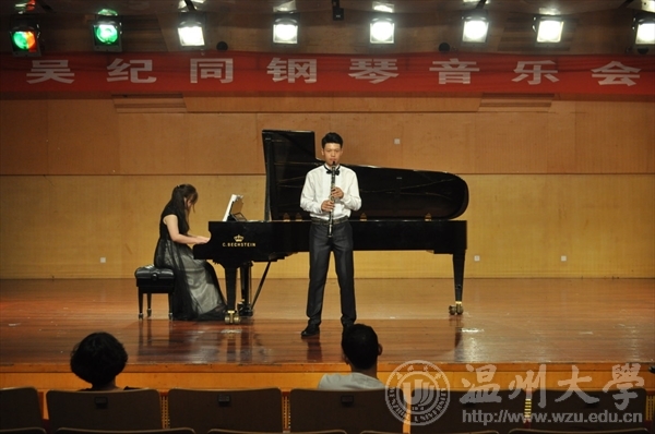 2017年6月6日晚18:30威尼斯wnsr666在北校区天瑞音乐厅举办了吴纪同钢琴毕业音乐会,本次音乐会表演者是我院13级师从胡敏老师的学生吴纪同,特邀嘉宾是赵福生、吴天同,主持人是陈倩倩。