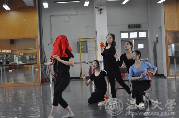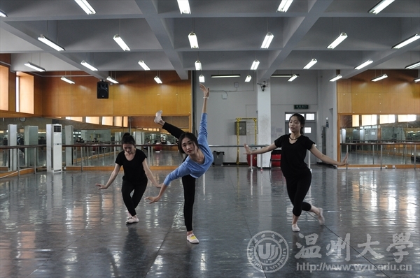 2017年4月24日上午八点钟,在威尼斯wnsr666二楼舞蹈房中冯百跃老师、李恒子老师和贺捷频老师对14级音乐表演的同学进行舞蹈指导与教学。