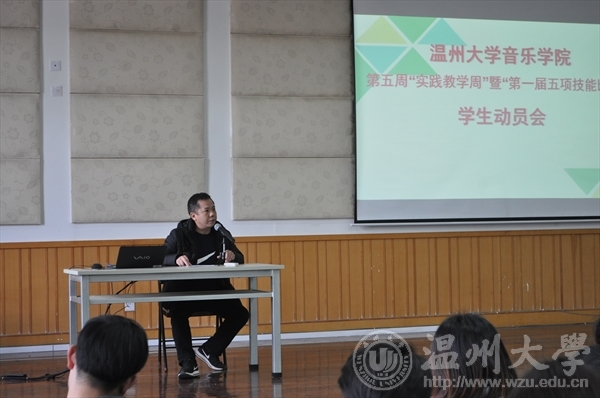 该场动员大会分为五个部分,王志毅老师首先跟同学们讲了第一个部分——解释“教学实践周”及“五项技能比赛的重要性”。第二,了解我院第五周实践教学的内容,教学实践周活动内容分别是理论基础知识比赛、师范技能校队选拔,讲座有结构化面试应对策略、师范技能比赛与考编、战略音乐教师素养与面试环节之我见,还有教师资格证笔试策略、声乐技能比赛、钢琴技能比赛、自弹自唱技能(合唱)比赛、器乐技能(舞蹈)比赛。