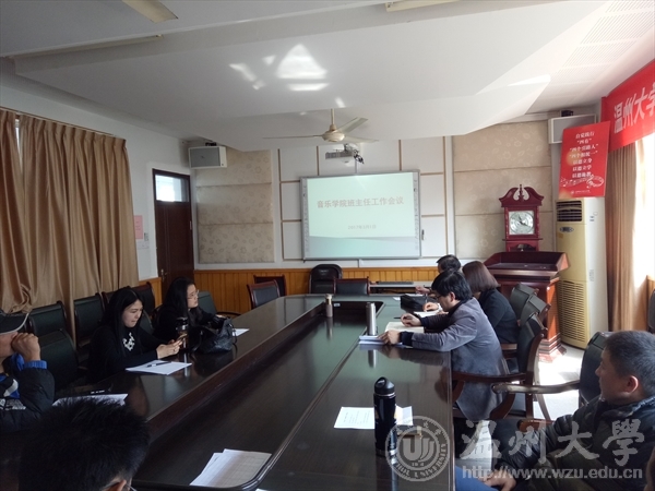 新学期,新起点,新面貌2017年31午,温州大学音乐学院新学期第一次班主任工作会议在北校区音乐楼207召开。音乐学院党总支书记刘青松、学生科副科长林海红和学院全体班主任老师参加了此次会议。