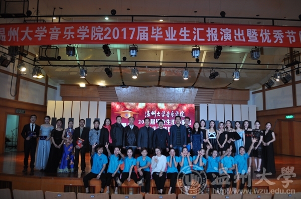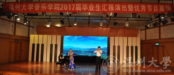 2017年1月6日晚18:30,威尼斯wnsr6662017级届毕业生汇报演出暨优秀节目展演在天瑞音乐厅隆重举行。学院院长赵玉卿、党总支书记刘青松、副院长王文韬、副院长王志毅出席,并与全院师生一起观看了整场演出。 首先,开场的是舞蹈《维族姑娘》欢快的音乐配上优美的舞姿,将音乐厅的气氛活跃起来,接着,女声二重唱《猫之二重唱》惟妙惟肖,生动地表现了两只猫为了争宠,相互之间的争斗,模样可爱,富有表现力。还有流行四人合唱《我在人民广场吃炸鸡》欢快的节奏,加上四个演唱者带有律感的动作,将气氛推上高潮。更有笛子独奏《扬鞭催马运粮忙》乐曲热情明快,以生动朴实的音乐语言,描写丰收以后的农民驾着满载粮食的大车,喜气洋洋地向国家交售公粮的情景。马蹄击节,车轮吟唱,快乐的农夫扬鞭催马,把丰收的喜悦铺撒在运粮的小道上。除此之外,声乐独唱《嘉陵江上》、二胡独奏《战马奔腾》、声乐独唱《故园恋》、钢琴独奏《贝多芬奏鸣曲No.30》《平静的行板Op.22》等优秀作品演绎,观众掌声热烈,座无虚席。
