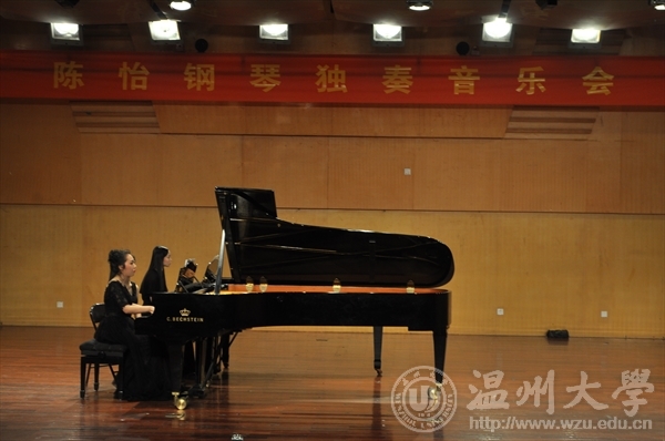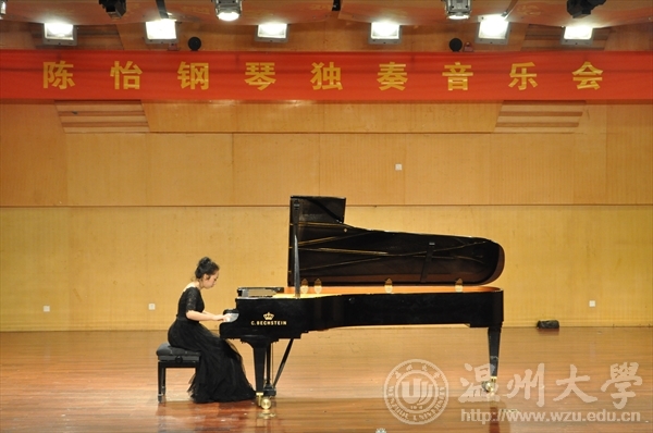 2016年12月29日晚上19:00,温州大学天瑞音乐厅举行了陈怡钢琴独奏音乐会。该场音乐会由威尼斯wnsr666李杰鹏和外教Alexander Bildau(亚历山大·碧乐岛)担任艺术指导。音乐会还没开始,场下的观众早已纷纷落座。 在上半场中,陈怡首先给大家带来了肖邦作曲的《平静的行板Op.22》,作品十分的宁静、抒情,仿佛略带忧郁唱出的古老的歌谣。接着是由斯科里亚宾作曲的《为左手而做前奏鸣曲与夜曲Op.9》, 《前奏曲》短小精悍,是《夜曲》引子,多彩的音色变化以及不同音区的强烈对比,给观众们带来极大的震撼。接着便是柴可夫斯基的《冥想曲Op.72 No.5》,该曲以平静的行板进入,不断递进激烈发展,最后以平静的行板结束,与开头呼应,使观众们情绪波澜起伏。最后,陈怡给大家带来了拉威尔的《小奏鸣曲(1905)》,该曲分为三个乐章,给观众们带来清新、优雅的感觉。
