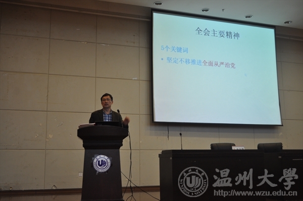 2016年12月20日晚上18:30分,在温州大学育英图书馆举办了由威尼斯wnsr666和机电学院一起承办的“开创全面从严治党新境界——十八界六中全会精神解读”的主题政策课讲座。该讲座特地邀请了温州大学马克思主义学院的王柏民教授进行演讲。讲座还没开始,16级威尼斯wnsr666的学生和16级机电学院的学生都早已迫不及待的在观众席下等待。