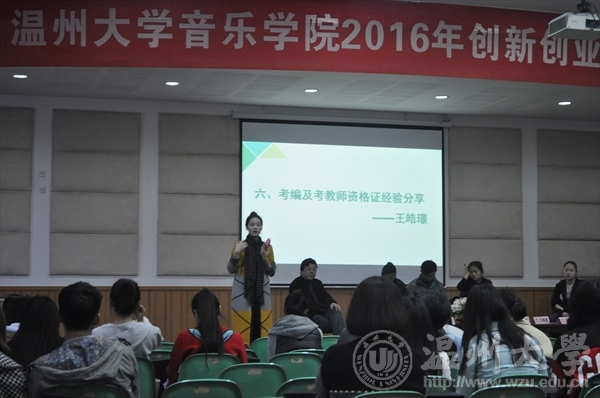 2016年12月21日下午威尼斯wnsr666全体16级同学一同在音乐楼201参加了2016年创新创业与就业经验分享会。此次分享会邀请了往届的校友、学长学姐以及相关老师来给大家讲关于考编、考教师资格证、创新创业等内容。分享会由李杰鹏老师主持。 首先是致知艺术国家级创业团队队长王超为我们介绍了致知艺术,以及其主要的作用,并给我们分享了她的创业经历,她说:大学生创业我们收获的不仅仅是金钱,更重要的是走上社会的本钱,在大学就能拥有别人走上社会才感受学习的东西,你将比别人更快一步。致知艺术行政总监沈梦雅为我们总结了致知艺术的创业精神和创业意识:创新为先,专注精神,独立自主,乐观自立,敢于冒险,拥抱变化,创造价值,机会导向,创新为本,整合资源,风险意识。接下来了李杰鹏老师为我们解释了什么是创业,大学生应该如何创业,创业可以被教育吗,学习创业有矛盾吗,没有创业的打算还需要接受创业的教育嘛这几个问题,和大家一一解释讨论,同学们都受益匪浅。网络创新电商方面余耀文学长为讲述了他的电商创业之路。紧接着天之音艺校校长陈红红给我们详细的介绍了天之音艺校,以及她的创业经验,并传授给我们很多她碰到的问题的解决方法,还有创业时需要注意到的问题等。最重要的就是大三的学姐王皓璟的发言了,她着重讲了我们马上就要面临的教师资格证考试,她详细的给同学们讲了考编和考资格证的内容,同学们都很认真的倾听,并做了笔记。
