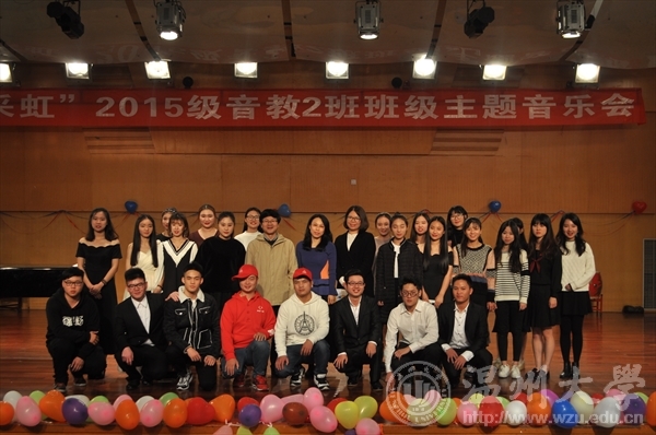 2016年12月13日下午13:30威尼斯wnsr666在温州大学北校天瑞音乐厅迎来了第十四周教学实践周的第三场班级舞台音乐会――15音教2班“采虹”舞台音乐会。本次音乐会由严伊娴老师指导,全体教师出席,15音教2班全体学生以及特邀嘉宾出演。