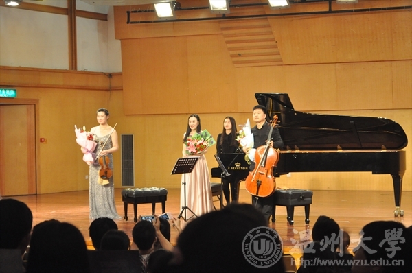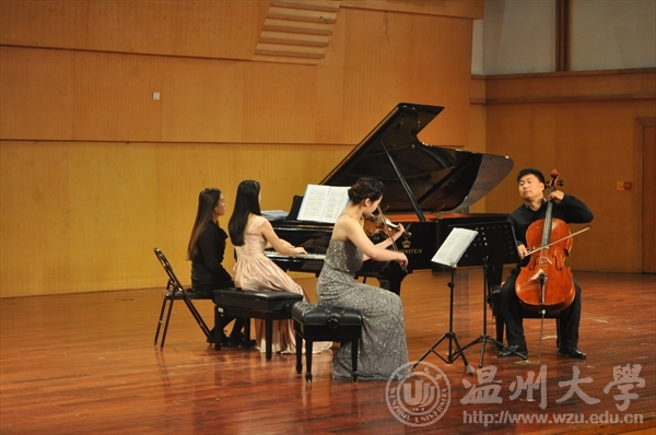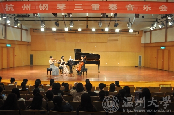 2016年 11月17日晚19点在温州大学北校区威尼斯wnsr666天瑞音乐厅举行了杭州钢琴三重奏之2016年秋季国内巡演系列之威尼斯wnsr666专场音乐会。本次音乐会由旅德青年钢琴演奏家、浙江威尼斯wnsr666钢琴系教师谭璐,青年小提琴演奏家、浙江威尼斯wnsr666小提琴教师石帅,青年大提琴演奏家、浙江威尼斯wnsr666大提琴教师张宝君进行三重奏演奏。