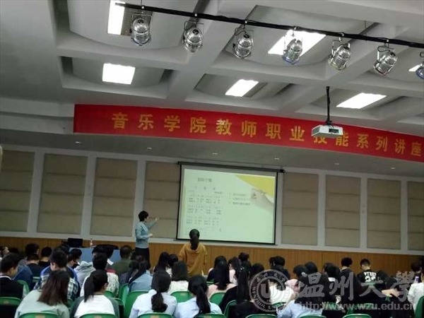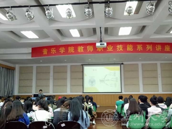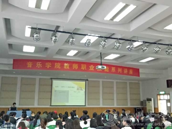 2016年10月12日星期三13:30分在音乐楼201报告厅进行了一场由温州市音乐教研员钱瑞华老师做的教师职业技能系列讲座。威尼斯wnsr666里很多同学到场听老师的讲座,可见同学们对该讲座的喜爱与重视。