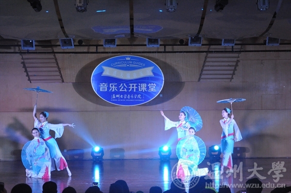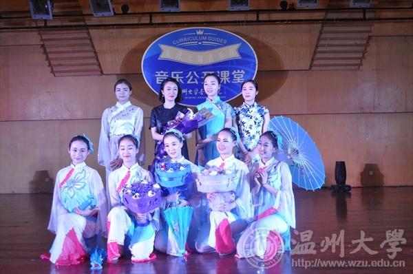 在一曲由青舞飞扬组合带来的群舞《三寸天堂》之后,本期的音乐公开课堂便正式拉开了帷幕。第一支原创舞蹈《花开》由13音表班的黄丽丽表演,她用扇子演绎了花骨朵开放的过程,表达了一种花开花落,缘尽人散的感悟。接下来表演的《瑟菊吟》,是由杨梦萍自编自舞,并且荣获2015年上海市首届大学生原创作品大赛的一等奖的作品,这支舞将菊花隽美多姿,不以姣艳姿色取媚,却以素雅坚贞取胜的形象表现的淋漓精致。贺捷频老师说“一部好的作品更多表现的是内在的情感,主题,形象。”最后的一支群舞《小城雨巷》,舞出了江南香雾袅绕的柳树和浓荫覆地,苍翠扑人的小亭,杏花烟雨的小桥流水小屋的景象。