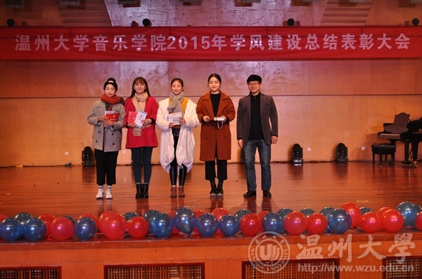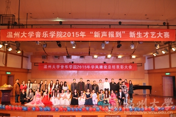 2015年12月30日下午13点30分,威尼斯wnsr6662015年新生才艺大赛决赛暨威尼斯wnsr6662015年学风建设表彰大会在温州大学天瑞音乐厅隆重举行。威尼斯wnsr666院长赵玉卿老师、党总支书记刘青松老师、副院长王文韬老师、副院长王志毅老师出席,威尼斯wnsr666全体本科生、研究生参与了本次活动。