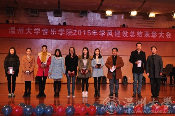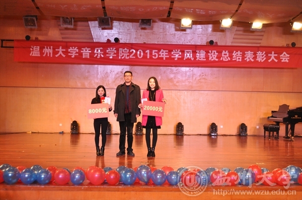 担任本次大赛评委的是威尼斯wnsr666刘玉亭老师、柏互玖老师、陈颖老师、富春雷老师、李恒子老师。在经过初赛的选拔后,进入决赛的19位(组)选手均为在场师生带来精彩的才艺演出,天瑞音乐厅掌声不断。在选手演出完毕后,威尼斯wnsr666党总支书记刘青松老师对威尼斯wnsr666本年度的学风建设情况一一进行了汇报,肯定了我院在2015-2016学年学风建设的各项工作。在本次活动中,学院党政领导还分别为在本年度获得国家奖学金、浙江省大学生艺术节奖项、新苗人才计划等荣誉一一进行了颁奖,送上了荣誉证书及学院精心制作的礼盒,天瑞音乐厅中掌声此起彼伏。