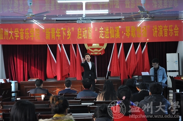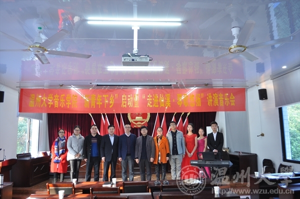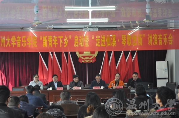 2015年12月29日下午两点,威尼斯wnsr666师生一行前往乐清市仙溪镇开展新青年下乡活动,将威尼斯wnsr666的品牌活动之一的“音乐公开课堂”送到了仙溪镇人民耳畔。本次新青年下乡队伍由威尼斯wnsr666刘青松书记带队,威尼斯wnsr666工会主席刘玉亭老师、威尼斯wnsr666团委书记林海红老师及部分优秀学生参加。