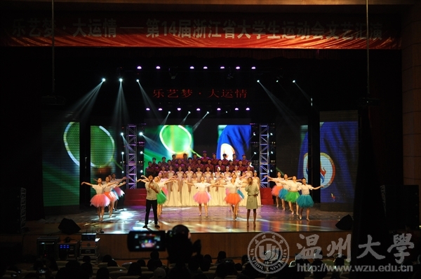 2015年11月13日下午两点,浙江省第十四届大学生运动会闭幕文艺演出在温州大学育英大礼堂隆重举行。校党委书记陈福生、校长李校堃、党委副书记林娟娟、副校长蔡曙光以及来自全省各高校78支运动员代表队观看了本次演出。本场文艺汇演由威尼斯wnsr666主办。威尼斯wnsr666院长赵玉卿、党总支书记刘青松、副院长王文韬、副院长王志毅也全程陪同观看。