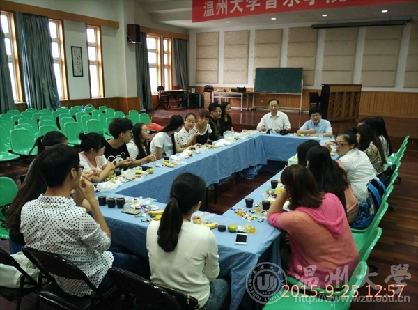2015年9月25日中午,北校区音乐楼201教室中不时传来阵阵欢声笑语,在班主任李兵老师的组织下,15音研全体同学欢聚一堂,举行了一次别开生面的中秋茶话会,李兵老师为同学们带来了月饼、水果、饮料,提前与同学们度过了一个不一样的中秋节。26日晚上,13音表班的班主任柏互玖老师在微信群中询问班级同学是否都在寝室。在同学们做了肯定的答复之后没多久,柏互玖老师就为每个寝室的同学都带去了月饼与老师的关心,让同学们大为惊喜与感动。15音教1班的同学们踏入大学的门槛还不到一个月,但是在这个中秋,他们的班主任王秀敏老师也同样给他们带来了一个满满是爱的中秋节,在王秀敏老师的组织下,15音教1班开展了第一次班级集体活动,吃上了班主任老师为他们制作的月饼,这批15级的小鲜肉们一起度过了他们离开家之后的第一个中秋节。同样也是在中秋节的晚上,14音研班班主任刘玉亭老师放弃了与家人团聚的时间,邀请同学们一起尝尝他的家乡菜,共同度过了2015年的这个中秋节。