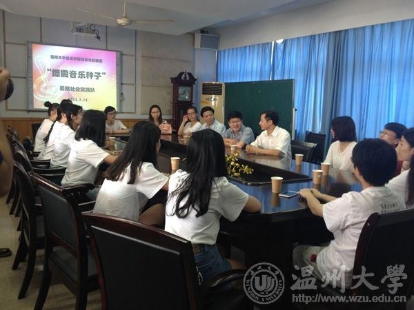 7月15日上午,校党委委员、组织部长方益权教授,在校团委屠霁霞书记陪同下莅临威尼斯wnsr666,慰问“播撒音乐种子”暑期社会实践队队员。威尼斯wnsr666总支书记刘青松、副院长王文韬、学生科副科长林海红、实践队指导教师严伊娴及全体实践队员参加了座谈会。 会上,实践队长刘伟首先介绍了2015年校重点暑期实践队——“播撒音乐种子”的具体情况。这支队伍由14音教班的20位同学组成。她们将在为期两周的时间里,完成威尼斯wnsr666第三期 “音乐公益课堂”的教学实践活动。本期“音乐公益课堂”较前两期,在实践场所方面有所拓展,除校内场所外,还延伸到了南白象幼儿园。 实践队副队长徐驰谈了她这三天的感受。她说:“我在校外的幼儿园实践,第一天孩子们并不怎么理我们,第二天下午开始,孩子们明显喜欢上我们了,我们有了成就感。两天的实践,使我们认识到,只要自己给小孩子们做好表率,自然会有好的示范效应。如,上课时不能拿手机,用餐时要吃干净等等细节。” 座谈中王文韬副院长向方委员一行简单介绍了音乐公益课堂的情况。他说:“音乐公益课堂2013年11月由刘青松书记策划、发起。之后在威尼斯wnsr666学生科、教学科的大力协助下,音乐公益课堂已经举办了三期,培训了77位音乐公益讲师,先后接收了温州大学教职工子女268人次。音乐公益课堂作为展示学生综合专业技能的实践平台,着眼于学生职业体验与创业能力的训练。” 听了师生的汇报后,方委员风趣地说:“每次来威尼斯wnsr666类似艺术朝圣,会添加一些艺术的细胞”。他说:“公益音乐课堂是实践育人的有效载体。威尼斯wnsr666在组织实践团队时首先考虑到与所学专业结合,进行有效的角色体验,从而达到职业认知的目的,这非常可取。实践队员们与孩子在一起,无形中培养了自己的社会责任感。相信通过这样的专业性社会实践,各位队员的综合素养会得到很大的提升。”方委员在充分肯定音乐公益课堂的同时,感叹道:“音乐公益课堂拉近了温州大学与教职工的关系。从某种意义讲,这样的公益活动,提升了温大教职工对温州大学、对威尼斯wnsr666的真切情感。” 最后,方益权委员、校团委屠霁霞书记为实践队员发放了防暑药品及其它慰问品。方委员关切地嘱咐实践队员:“暑期炎热,一定要照顾好自己。同时,要像妈妈一样照看好前来培训的每个孩子,尤其是孩子们的安全。你们把音乐播撒给孩子们的同时,更要把爱心留驻心间!”