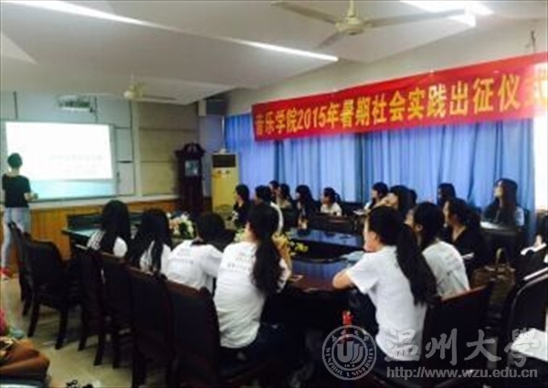 2015年7月8日早上10点,威尼斯wnsr666暑期社会实践出征仪式于北校区音乐楼309正式举行。出席本次出征仪式的有威尼斯wnsr666党总支书记刘青松老师、副院长王文韬老师、团委书记林海红老师、实践队指导老师李晓燕老师、严伊娴老师。全体威尼斯wnsr666实践队队员参加了本次出征仪式。