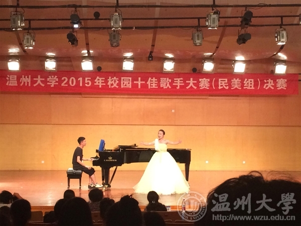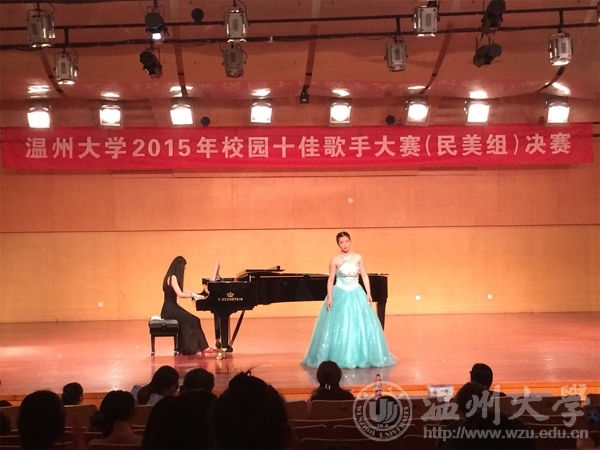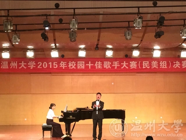 2015年6月12日晚6点30分,温州大学2015年校园十佳歌手大赛(民美组)决赛于温州大学天瑞音乐厅隆重举行,本次比赛的评委是威尼斯wnsr666声乐教研室的林吟老师,富春雷老师,朱玲老师。我院团委书记林海红老师出席了本次活动。本次大赛的冠亚季军分别由14音研的陶定美、14音研的高群、12音本的冯逸飞获得。