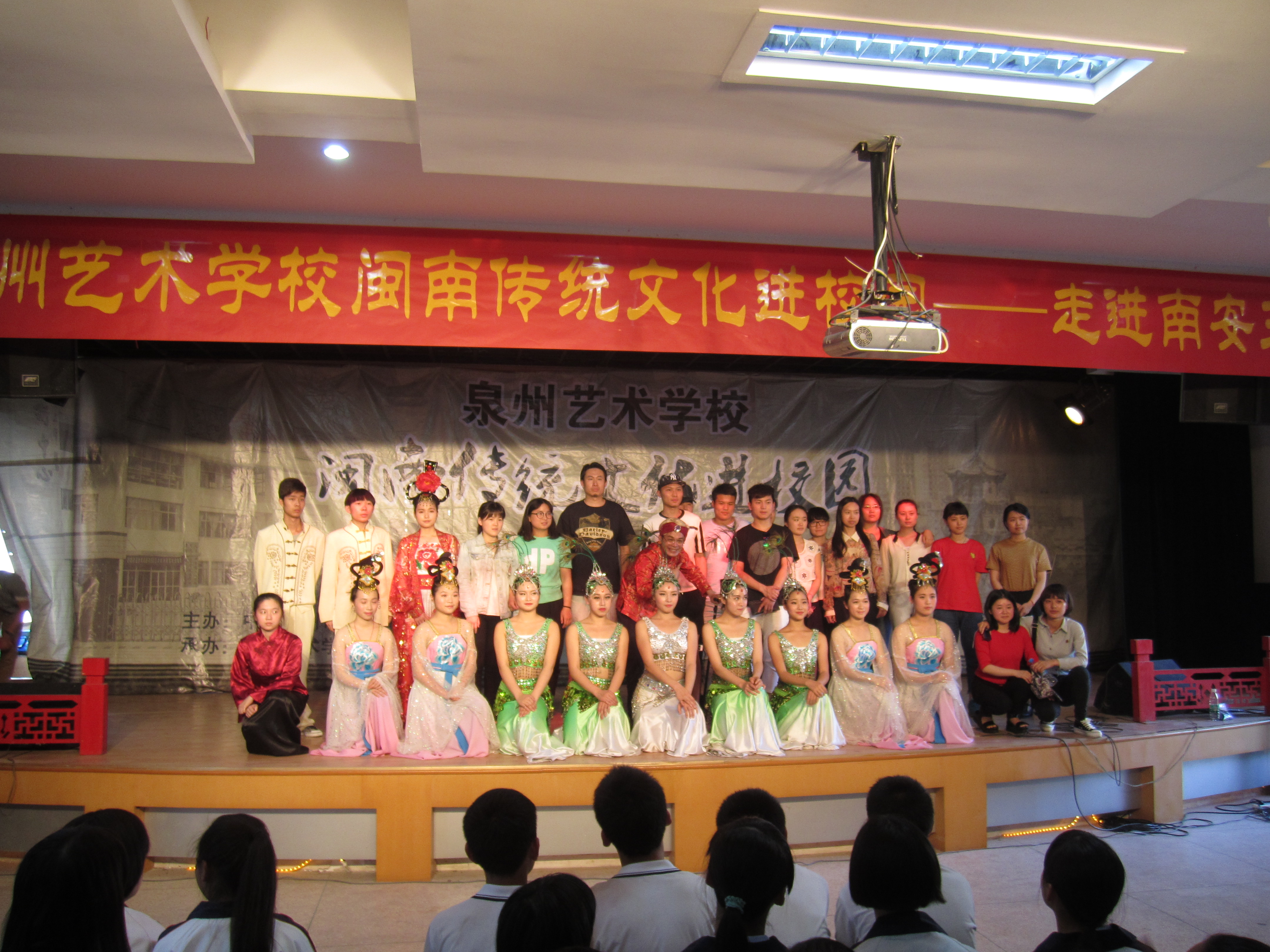 12日下午同学们一早出发赶赴南安三中,观赏了泉州艺校闽南传统文化进校园活动,木偶戏、梨园戏、南音、高甲戏等闽南特色音乐让大家大开眼界,初步感受了闽南音乐文化的丰富多彩。许老师还作为特邀嘉宾高歌一曲,引起掌声阵阵。晚上,大家又来到泉州的文庙,感受了福建南音的地道韵味。13日上午,大家在导游的带领下,来到开元寺、清源山等名胜,了解了泉州多种宗教并存的深厚底蕴。而泉州博物馆、闽台缘博物馆里丰富的民俗、历史、人文内涵让大家对闽南文化有了更深刻的认识和了解。