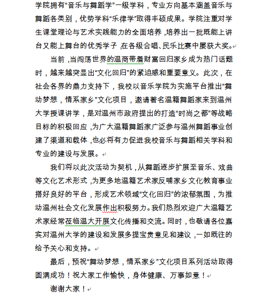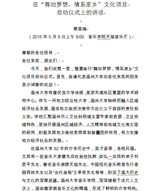 温州大学校长蔡袁强在“舞动梦想,情系家乡”文化项目启动仪式上的讲话