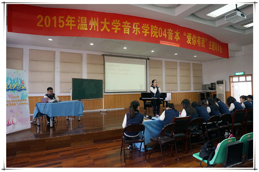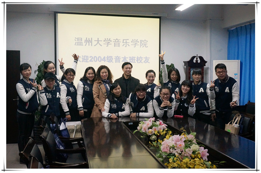 此次主题同学会于下午2点开始,主要由教研活动、意见建议座谈会、拍照留念三方面构成。在教研活动上,由现任教温州市第六幼儿园的丁卉老师主讲题为《 3-6岁幼儿音乐教育理念的操作》的讲座,她用奥尔夫教学理念,运用肢体法、故事法、图谱法等多种方法解决3-6岁幼儿音乐教学、教育中存在的问题,帮助他们感受、感知音乐,并树立热爱音乐的积极人生态度。主讲老师幽默风趣的教学语言和生动活泼的肢体动作,令在场的会议代表们赞不绝口、感触颇深。在接下来的意见建议座谈会上,04音本班的校友们根据学院的课程设置、教育教学、就业指导及其它方面提意见建议,并针对提出的意见建议给出可行、富有参考价值的措施。座谈会上,王文韬指出,此次同学会意义非凡,学院会虚心接受大家提出的意见建议,并有目的、有计划地进行改良。同时,也希望每个同学能不忘我院的宗旨——切磋现代乐艺,发扬民族精华,能将中国传统的、本民族的乐艺精华一代一代传播下去。