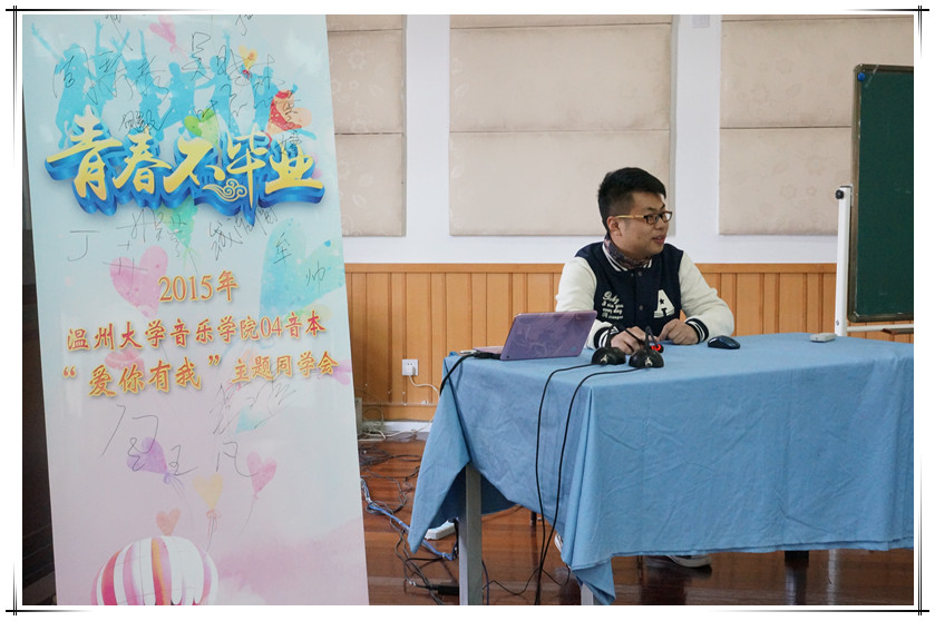 2015年1月17日,我院04音本班校友回母校举办“爱你有我”主题同学会。此次同学会有学院党总支书记刘青松、副院长王文韬、04音本班班主任富春雷老师以及20余位在校生代表一同参加。