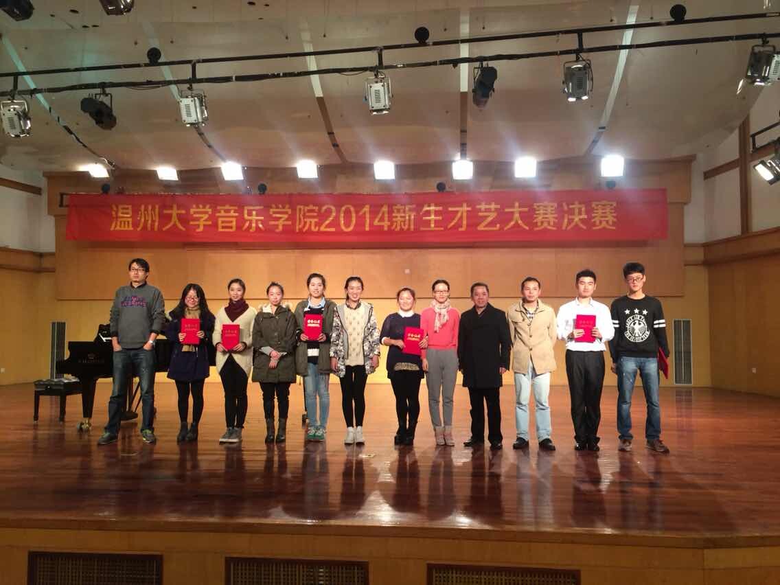 2014年12月3日晚6点30,威尼斯wnsr6662014年“新声报到”新生才艺大赛决赛在北校天瑞音乐厅拉开帷幕。理论教研室王志毅老师和柏互玖老师、钢琴教研室柳耶老师、声乐教研室许天鸣老师担任此次比赛的评委 。