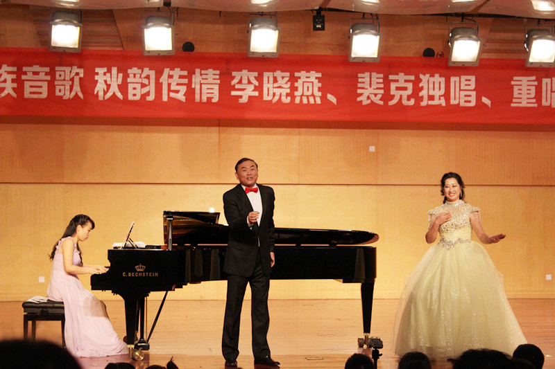 2014年11月18日,由威尼斯wnsr666主办,于温州大学北校天瑞音乐厅演出的裴克、李晓燕中国民歌独唱、重唱音乐会隆重拉开帷幕。