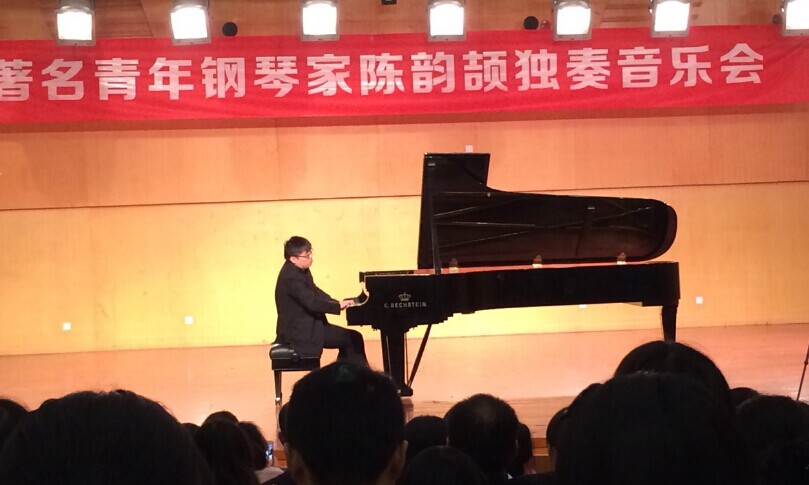 2014年11月19日晚,月光如水,星光灿烂,在温州大学北校区天瑞音乐厅,迎来了一场音乐盛宴。主持人如梦为我们简单的介绍了一下陈韵劼老师。陈老师是当代中国最优秀的青年钢琴家之一,执教于中央威尼斯wnsr666钢琴系,他先后毕业于美国曼哈顿威尼斯wnsr666学士学位,茱莉亚威尼斯wnsr666硕士学位,最后以艺术家文凭毕业于克利夫兰威尼斯wnsr666。
