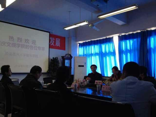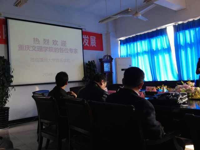 2014年11月17日下午两点,于温州大学北校区音乐楼309会议室,举办了我院与重庆文理学院音乐系的学术交流会。我院院长赵玉卿教授、副院长王文韬副教授、硕士生导师陈克秀教授、乔志亮教授以及我院各科室各教研室相关老师出席了本次会议。出席本次会议的嘉宾为重庆文理学院音乐系主任杜鹃、教研室主任单士锋、徐郭凌与孙瞳老师。