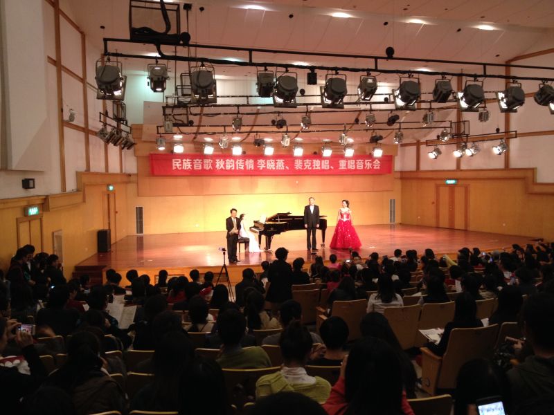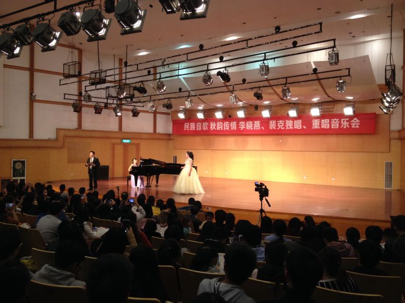 2014年11月18日,由威尼斯wnsr666主办,于温州大学北校天瑞音乐厅演出的裴克、李晓燕中国民歌独唱、重唱音乐会隆重拉开帷幕。 临窗、听风、看月。在这个秋天季节,声声民歌透入大家的心弦。走入大厅,你会发现厅内坐满了人,两侧过道也都站着来听音乐会的声乐爱好者。本次音乐会可谓阵容庞大。主持人是首都师范大学威尼斯wnsr666教授、现任中国音乐家协会会员的雷达教授。本次音乐会的主角之一裴克老师是美籍华人、歌唱家、美中音乐家协会主席,而李晓燕老师是威尼斯wnsr666教授、硕士生导师。他们的钢琴伴奏都是在威尼斯wnsr666钢琴副教授严伊娴和莫颖老师。如此庞大的一场音乐会当然会吸引来自不同学院的学生和老师参与,晚上七点整,全场爆满,音乐会准时开始。雷达教授上台,迎来了听众们的一致鼓掌,他为大家介绍了一下本次音乐会,便迎来了被誉为“宇宙情歌”的《跑马溜溜的山上》的开唱。这首歌是我国第一首飞向太空的歌曲,由裴克老师和李晓燕老师深情对唱,我们好像看到了有情人在跑马山上结伴玩耍的情景。曲毕,掌声雷动。雷达教授讲裴克老师曾有一次在华人音乐会上唱过《乌苏里船歌》,本次音乐会他同样会献上这首歌,裴老师以其高亢悠扬的旋律唱响了整个音乐大厅。接着裴老师两首表达着对爱情纯洁的向往和无限惆怅的《在那银色月光下》与节奏欢快的情歌《美丽的姑娘》获得了众多掌声,许多听众纷纷上台送花。李晓燕老师是歌剧院出身,歌声婉转动听。一首《燕子》,质朴的歌词配上优美动听的歌声征服了听众。《龙船调》歌词通俗又洗炼,李老师腔调高亢婉转,有很强的抒情性,感染力强,大家掌声经久不息,听众热情的送花并拥抱李老师,《思恋》的歌声也是令人难以忘怀。接下来两位老师合唱了一首《花儿为什么这样红》,这首歌具有浓郁的民族风格和地区特色。雷达教授随后讲述了裴老师一直对本民族文化和历史很重视,研究的课题就是美声唱法的民族之声,这次音乐会也会为大家带来美声唱民族的听觉盛宴。《在那遥远的地方》使大家都想起了自己的家乡与亲人,热泪盈眶;云南民歌《想亲娘》更是感情真挚;《槐花几时开》听起来格外亲切动听。现场一度火热,李老师来自东北省,她用百灵似的歌声分别带来了《情深意长》《心上人像达玛花》《今年梅花开》,表达了她对温州大学为她提供这一片土壤的感谢,把温州大学必须为自己的心上人,和对出生地东北的赞美。上台送花的人都排着队伍,李老师脸上洋溢着笑容。雷达教授先祝福了李老师,期待她也会今年桃花开,接着雷教授念了一首自创的祝贺诗。记忆最深刻的是,一步一个脚印,就是时光中最美的风景,愿本次音乐会完满成功。 音乐会接近尾声,一首男女声对唱《想亲亲》,想念着亲人、温州和祖国。本次钢伴也是技艺超群。余音绕梁,三日不散。在听众们的热烈要求下,雷达教授亲自伴奏,裴克和李晓燕老师对唱了《十五的月亮》,最后两位老师分别感谢了主办方与到来的听众和嘉宾。如此美好的时光,心绪安好,温暖如影随形,音乐会后,没有了生活的张力,收纳了一份安逸,也成就了心的和谐。