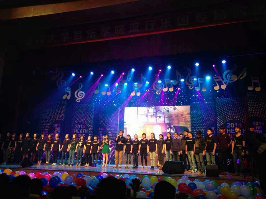 作为威尼斯wnsr666第六届艺术周的“前锋”演出,流行乐团的号召力并没有让大家失望,7点还没到,大礼堂内已经座无虚席。演出伊始,主持人王子文首先登上了舞台,并请出了今晚的神秘嘉宾——温州人民广播电视台的女主播胡红,接着向观众们介绍了威尼斯wnsr666的流行乐团,乐团在莫颖老师的带领下成立于2013年,是浙江省第一个高校流行乐团。乐团的成立,对于提高学生立足专业面向社会的能力,加强学院教师课堂与实践相结合,促进威尼斯wnsr666教学与实践的多样性,活跃温州大学校园文化气氛方面有着积极意义。本次音乐会特别邀请了温州爱尚乐队作为嘉宾演出。 现场气氛在主唱蒋志力的一曲《离开地球表面》带领下,渐渐活跃了起来,接着观众们的心又被他的一首《龙卷风》卷回地球,接受强风的洗礼。接着由流行乐团的成员依次带来了《爱的怀疑》、《Like a bullet》、《Hey Jude》、《启程》、《为你而活》等歌曲,逐渐把现场的气氛慢慢推向高潮,掌声和欢呼声体现了观众们激动的心情。流行乐团团员郑旺演唱的《父亲》让人百感交集。而由汤俏、熊聪、龚本丽、刘慧群四位同学演唱的《外面的世界》则带观众们走出惆怅。优美的歌声,不一样的演唱方式,让观众们体会到了不同的音乐。接下来的节目个个都很精彩,掌声从未停息。