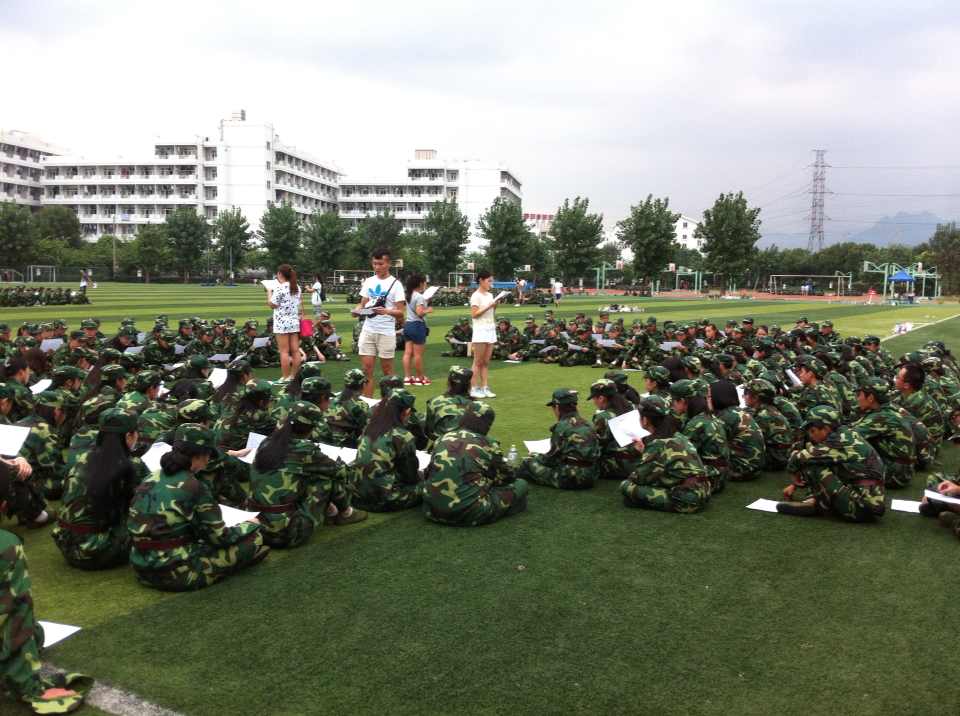 在经过几遍朗读熟悉歌词之后,这些“小老师”们开始一句一句教新生们学唱校歌。“大哉师道天下尊,承往哲兮启后人 厚培德本,深濬智源,学成致用教化谆 光大国族兮,造福人群 东海水,雁荡山,我温大精神,浩浩宕宕……”蒙蒙细雨中,满操场的“迷彩服”都在我院学生的带领下,认真学唱着这首旋律优美的温州大学校歌。温州大学作为一所全国教学研究型综合性大学,其校歌是大学精神的载体和校园文化的重要标志,亦是树立学校形象、凝聚人心,激励师生开拓创新的精神旗帜。对于新生而言,大学生活才是一个新的开始,对于学唱校歌这样的活动充满了兴趣和热情,在“小老师”们一遍又一遍细心的教唱下,伴随着悠扬的旋律,富含沧桑感的歌词,温大百年的辉煌历程在同学们脑海中渐渐飘过。正像歌词中所唱一样:百年风雨,我们一同起航;薪火相传,我们超越梦想,此时此刻,新生们在歌声中拥有了归属感,更好的融入温大这个集体。台下学唱学生们热情高涨,台上我院教唱学生歌声细腻,美声唱法令人陶醉。虽然操场上骄阳似火,但丝毫不影响大家学唱和教唱的热情,操场上到处掌声雷动、歌声此起彼伏,雄壮优美的歌声飘荡在校园的各个角落。