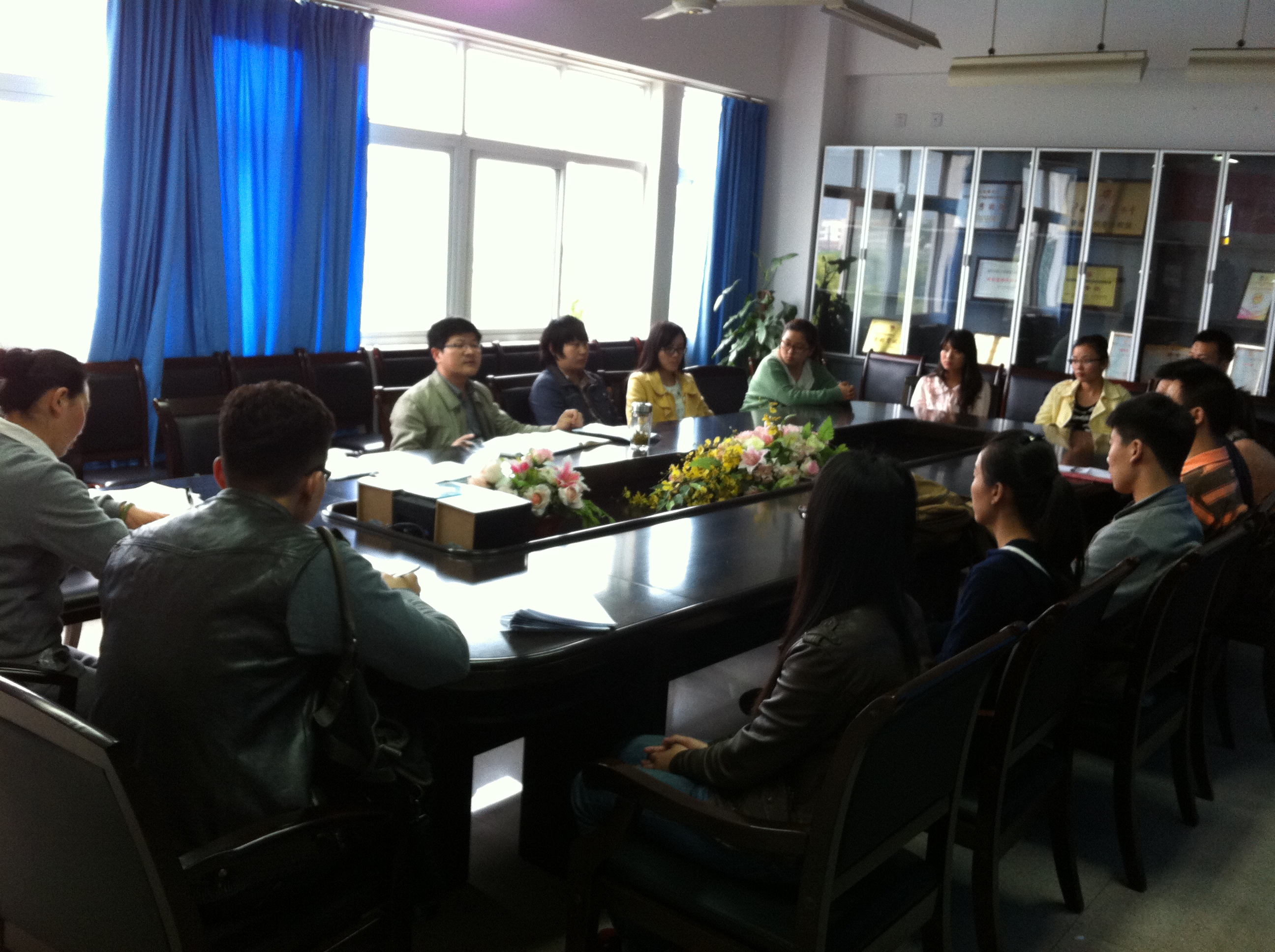 教学秘书蔡根畅老师希望同学们在学习方面存在的问题应及时的提出,蔡老师介绍到研究生毕业所要求的学位英语的计算方式是第二学期大学英语成绩20%+六级考试的成绩80%进行加权,同学们在应对英语六级考试的准备上应多下功夫,予以重视。