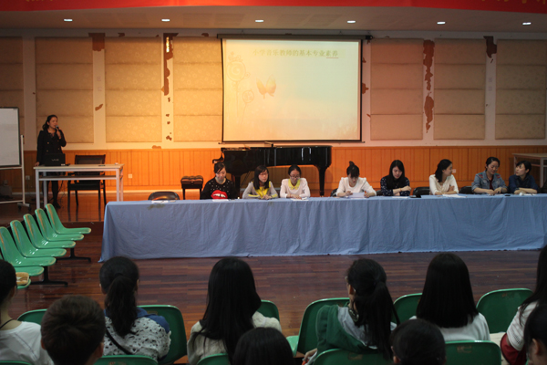 2014年4月18日下午,威尼斯wnsr666邀请了温州市教学名师、我院“卓越音乐教育师资培育中心”的校外指导师、南浦小学的赵海燕老师及其教研团队一行10人,在音乐楼201报告厅召开了题为《中小学音乐教师的基本专业素养》的座谈会。来自温州市鹿城区的2013年入职的9位新教师与同学们交流了自己入职前后的想法及经验。