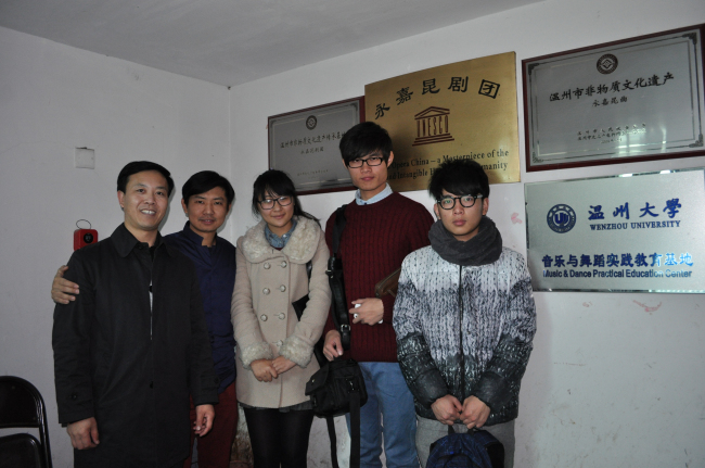 2013年12月11日,我院王文韬副院长,青年教师张中灿及相关学生前往“温州大学音乐与舞蹈实践教育基地”-------- 永嘉昆剧团观摩、学习与实践,为音乐创作积累素材。并结合威尼斯wnsr666与永嘉昆剧团的“院团合作”计划进行学院专业建设、促进永昆文化的传承与研究。王院长一行五人在永嘉昆剧团党委黄光利书记的陪同下,参观了剧团的排练场地,了解剧团在创作、演出以及文化传承方面的情况,并在知名音乐人王橹窗先生的陪同下,观看了永嘉昆剧团的演出。