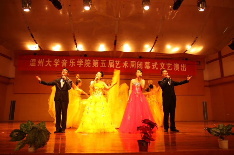 据悉,威尼斯wnsr666第五届艺术周(2013年11月18日—11月22日)共举办了五次学术讲座:其中,为丰富威尼斯wnsr666全体师生知识,请来了中央威尼斯wnsr666作曲系副教授陈欣若和著名音乐人邹畅为大家展现流行音乐的魅力。另外,也有各专业方面的学术讲座,例如讲师莫非关于“现代舞赏析”的讲座是为舞蹈教研室舞蹈专业学生而精心打造,Alex教授学术讲座及公开课也是为钢琴教研室钢琴专业学生带来福音。本届艺术周共有专业比赛七场,包括第二届音乐舞蹈知识竞赛、第四届钢琴大赛、器乐比赛、舞蹈比赛、声乐比赛等。本届艺术周还有音乐会共四场,其中,实验艺术剧院流行乐团为首场演出,影响甚广。另外,研究生专场音乐会、温州大学第四届大学生钢琴比赛颁奖音乐会都给大家带来了不一样的视听感受。本届艺术周还举办了一场博士论坛,为理论教研室的老师提供学习、交流的平台。另外,本届艺术周中,民乐团、室内乐团、合唱团各排练三次,舞蹈团、流行乐团各排练两次。