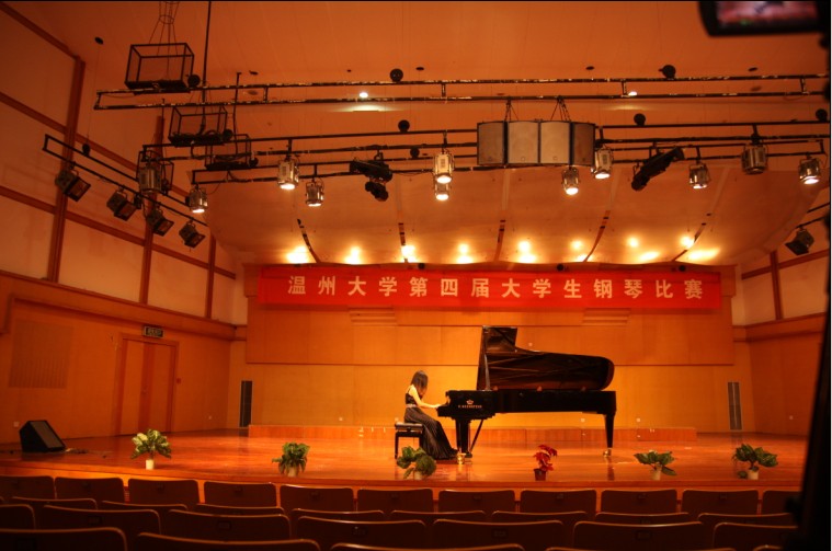 2013年11月21日下午2点,由温州大学教务处主办、威尼斯wnsr666承办的第五届威尼斯wnsr666艺术周专业比赛之“温州大学第四届大学生钢琴大赛(决赛)在北校区天瑞音乐厅隆重举行。全院师生共同观看比赛,担任此次钢琴大赛评委的是温州市音乐家协会副主席、钢琴协会主席郑小冰老师,教师教育学院钢琴教研室翁鲜丽老师,和威尼斯wnsr666钢琴教研室陈颖、陈思、王晓佳老师。