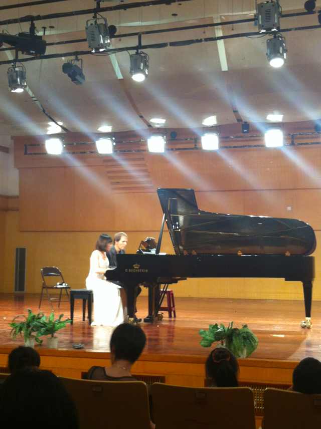 周年校庆期间,威尼斯wnsr666阮辛怡老师与威尼斯wnsr666德国籍外教,钢琴家亚历山大碧乐岛教授合作演奏了一场钢琴四手联弹专场音乐会。音乐会题为