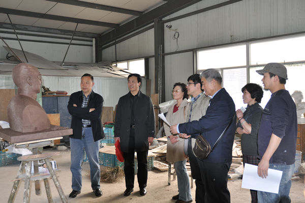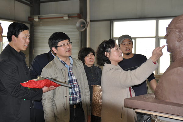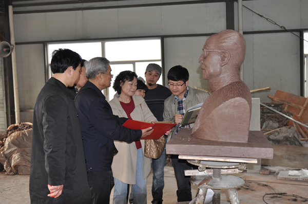 3月29日,在学院党总支书记刘青松、副院长王文韬和校宣传部童传武老师陪同下,缪天瑞先生的亲属到杭州现场确认铜像设计制作方案。