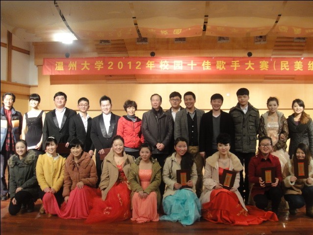 温州大学2012年校园十佳歌手大赛民美组决赛暨颁奖晚会,于12月23日晚七点在北校音乐厅隆重举行。参加本次活动的评委有:威尼斯wnsr666声乐教研组组长李兵副教授,威尼斯wnsr666声乐教师孙会玲教授,威尼斯wnsr666声乐教师叶文辉副教授。