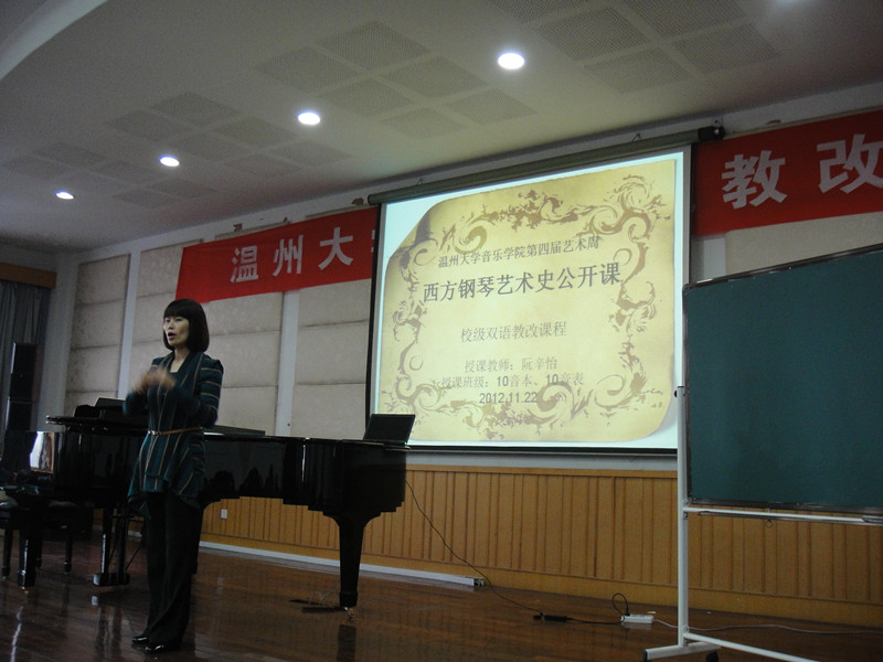 据悉,自第四届“艺术周”(11月19日-23日)以来,威尼斯wnsr666还推出了“课堂教学创新”系列活动。阮辛怡老师的《钢琴艺术史》双语课程,作为校级公开课,得到了温州大学教育中心胡来林主任及院内外听课领导、教师的高度评价。温州大学督导王守琢老师说:“这是在我近五年任温州大学教学督导工作过程中,听到的最好的一堂课,值得向其它学院推广、学习。”