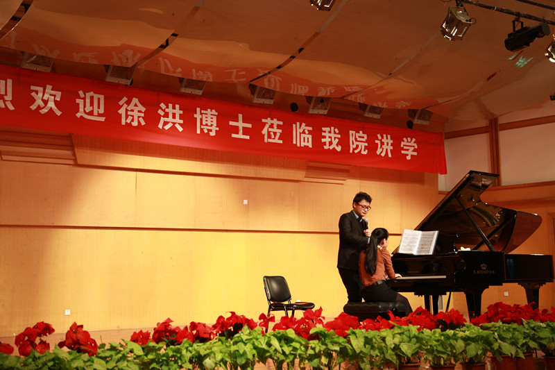 本次讲座,徐洪博士展示了他惊人的演奏功底和深厚的艺术修养,是一场视觉和听觉的双重盛宴。讲座结束后,我院选取了两位钢琴专业的同学由徐洪博士公开授课指导,徐洪博士用其对音乐严谨的态度提出了演奏者的不足,并用生动的语言不断鼓励激发出他们对音乐的最佳的诠释方式,使他们更为深刻的理解了乐曲的内在含义。