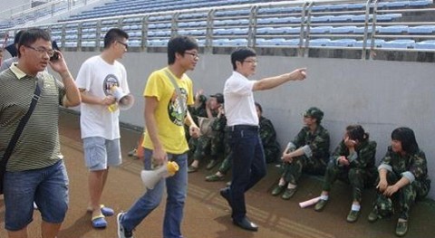 9月12日下午1:50,在我院党总支书记刘青松老师与辅导员林海红老师的带领下,我院部分高年级学生代表分赴温州大学南、北两个校区军训场地为2012级新生教唱温州大学校歌。