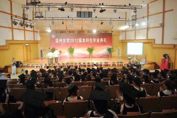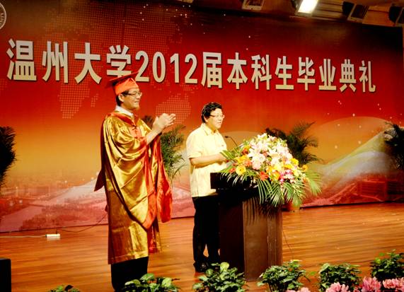 栀子花开,6月12日下午,我院2012届毕业生毕业典礼和学位授予仪式在北校音乐厅隆重举行。温州大学学位委员会主席蔡袁强校长、院领导党总支书记刘青松、副院长李杰鹏、副院长王文韬、部分学院教师及2012届全体毕业生参加了毕业典礼。典礼由副院长李杰鹏主持。