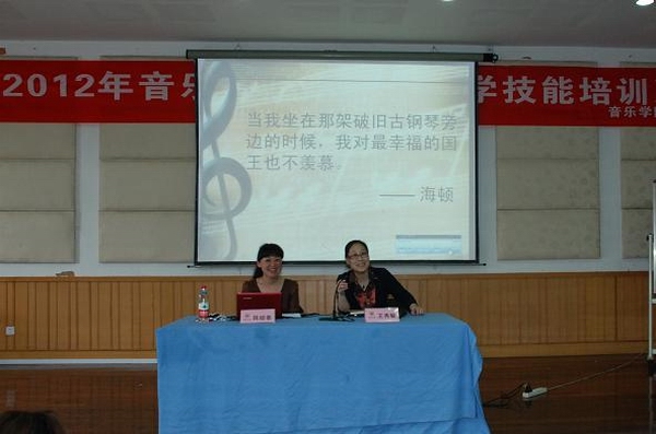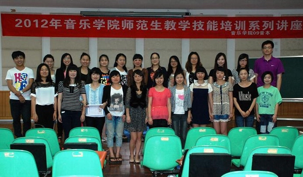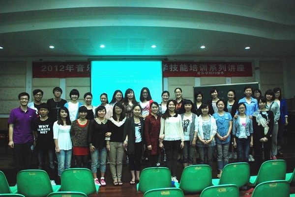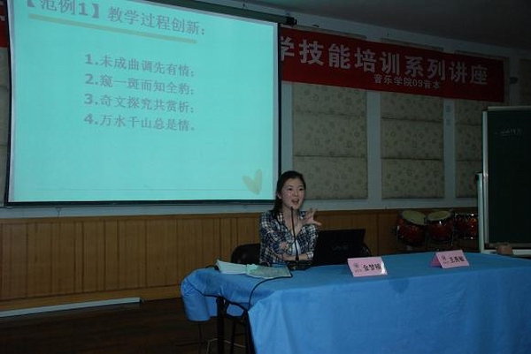 5月23日,温州市实验中学一级教师、温州市音乐家协会、合唱协会及温州市音乐教育委员会理事、省市音乐学科优质课比赛的多次获得者陈姬姜老师应邀为我院09音本及08、10、11级师范生带来了以“初中音乐课堂设计”为主题的讲座。此次讲座已经是09音本班开展师范生技能培训讲座的第五讲,也是最后一讲,同学们都格外珍惜这来之不易的机会,抱着认真和虚心的态度前来学习。文/蓝婷婷