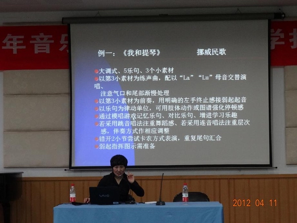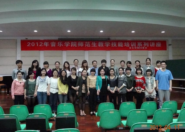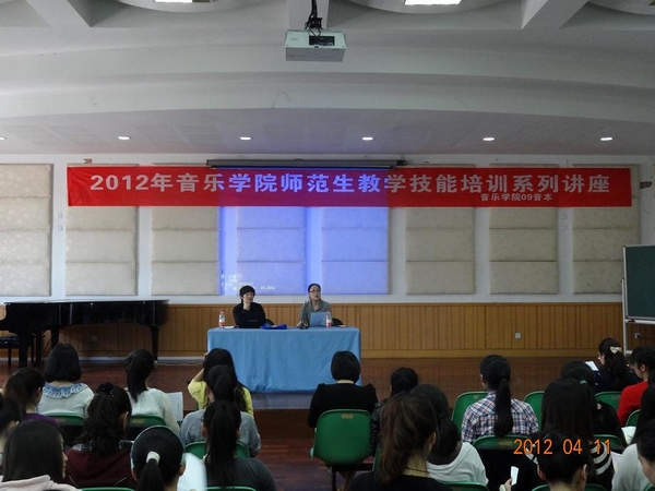 2012年4月11日下午,威尼斯wnsr6662012年师范生教学技能培训系列讲座在音乐楼201学术报告厅隆重开讲,第一场由温州市教育教学研究院的钱瑞华老师主讲。她是一位专业强,教学经验、比赛经验丰富的优秀教师,很多同学都慕名而来。此次听讲座的不仅有09音本的全体同学,还吸引了09音表本、08音本以及10音本和11音本的不少同学前来听讲,整个报告厅座无虚席。本次系列讲座,也是09音本组织承办的重要团日活动。